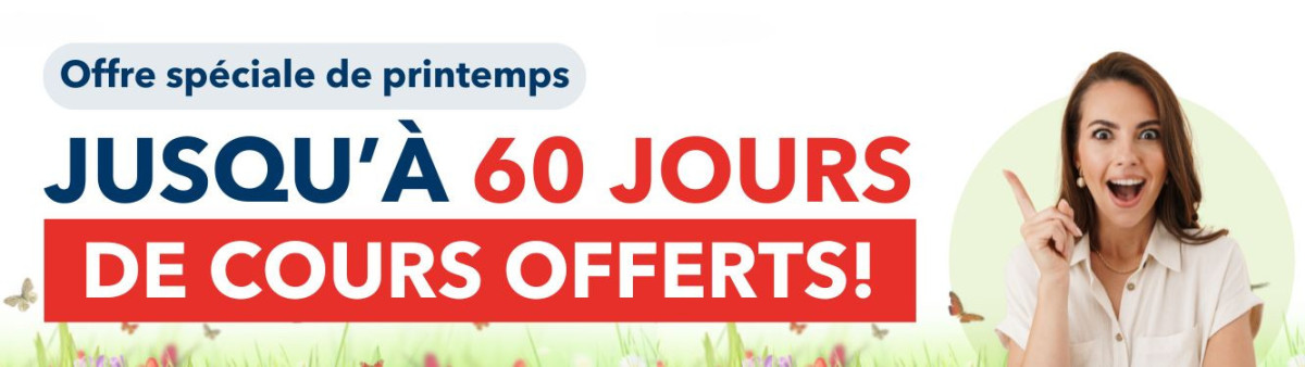 Obtenez jusqu’à 2 mois de cours de français offerts pour faire un vrai bond en avant.
